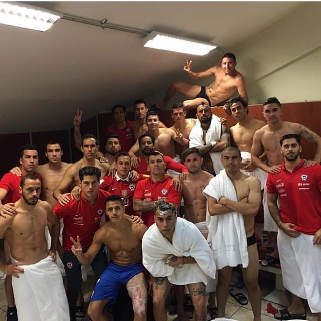 O goleiro Claudio Bravo mostrou que a seleção chilena está unida em busca da classificação à Copa de 2018. Com 100% de aproveitamento até o momento nas eliminatórias sul-americanas - a estreia foi com triunfo por 2 a 0 diante do Brasil -, os atletas celebraram no vestário a vitória por 4 a 3 diante do Peru nesta terça-feira. O jogador do Barcelona fez questão de mandar um recado aos críticos e pediu respeito ao atual campeão da Copa América.