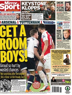 no calção alheio. A reação foi para a capa do jornal "Mirror", com a
